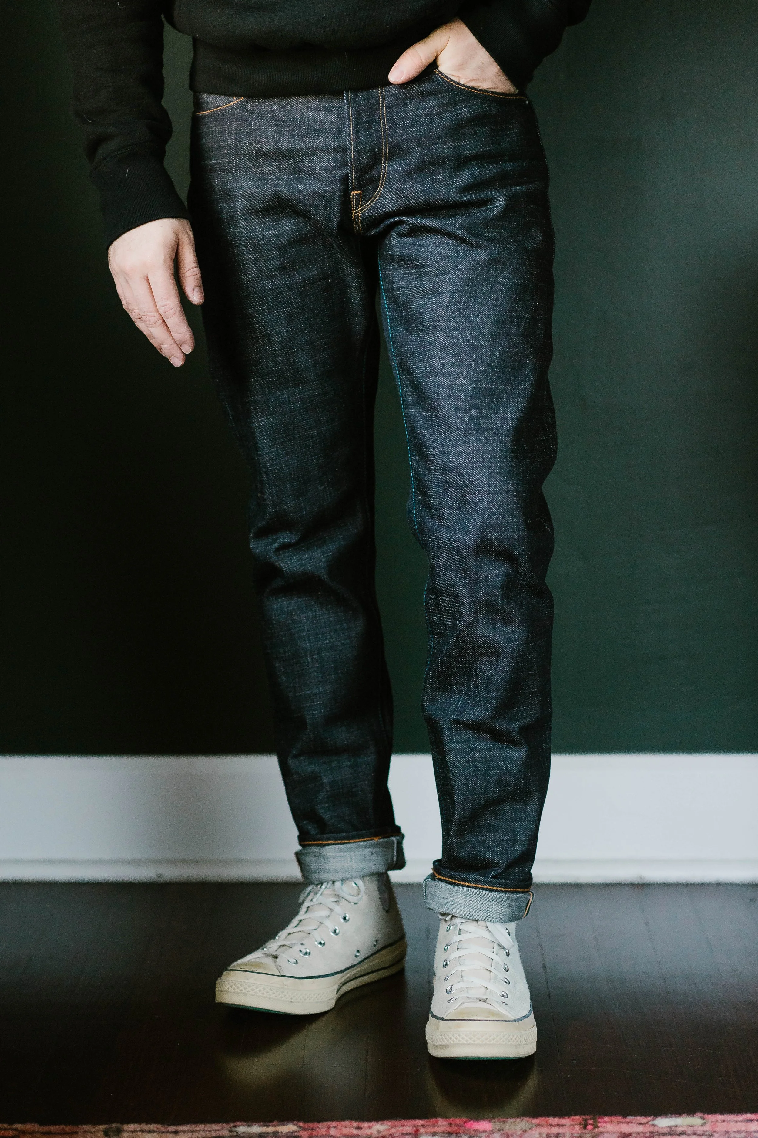 The Benzak x Japan Blue Jeans 16.5oz collab denim is available in two fits: Regular Fit/Tapered Legs and Slim Fit/Straight Leg